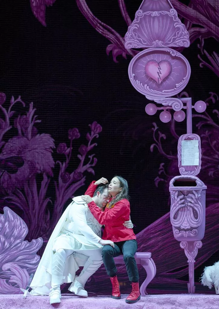 Die szenische Umsetzung von Verdis Meisterwerk ist leider misslungen. Über Ästhetik und Geschmack lässt sich bekanntlich streiten, was Regisseur Philipp Grigorian, der auch sein eigener Bühnenbildner ist, und Sergio Morabito mit seiner eigentümlichen Dramaturgie mit dieser Inszenierung vermitteln wollen, erschließt sich nicht. In szenischer, zuckerlfarbener Öde durch und durch ist keine psychologisch fundierte aus der Musik entwickelte Personenführung zu erkennen, Rampensingen dominiert, das Ergebnis erscheint als szenische Verballhornung des Trauerspiels, provoziert fortwährend Gelächter beim Publikum, weil unfreiwillig komisch. Die Kostüme von Vlada Pomirkovanaya geraten bisweilen geschmacklos: Rodolfo tritt als DHL-Zusteller, dann als ritterlicher Lohengrin-Verschnitt auf, Miller als abgehalfterter Penner, Graf von Walter im Saunamantel: unerträglich.