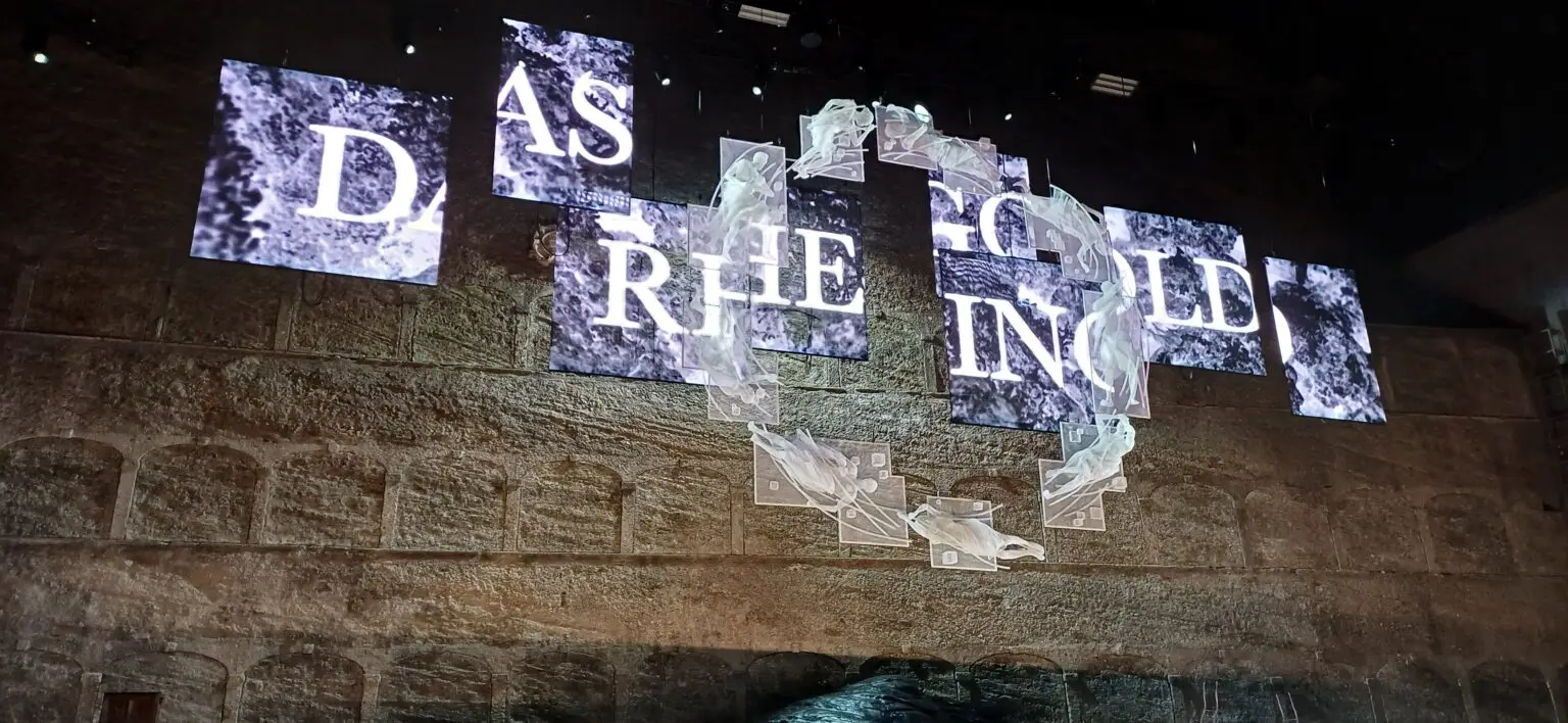 Was die Szene betrifft, entfaltet sich in der Felsenreitschule Mythologie – diese aber nicht nur auf die nordische beschränkt, beinhaltend auch Elemente aus den Mysterien von Eleusis, ebenso das antike griechische Drama und Priesterrituale – wie folkloristisches Welttheater in verschiedenen Facetten, wobei die Archaik des Raumes vollends in die Inszenierung eingebunden ist. Regisseur Kirill Serebrennikov, verantwortlich für Inszenierung und Ausstattung, und Dramaturg Daniil Orlov entführen die ZuschauerInnen zu Beginn der Tetralogie in eine apokalyptische Welt.