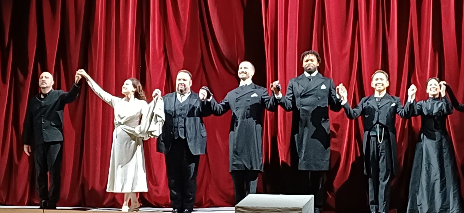 Standen doch in all‘ den Jahren seit der Premiere im Juni 2001 ausgezeichnete SängerInnen wie Viktoria Loukianetz und Marina Rebeka als Violetta, Pavel Cernoch und Tomislav Muzek als Alfredo Germont, Bernd Weikl und Renato Bruson als Giorgio Germont, um nur einige zu nennen, auf der Bühne sowie Dirigenten wie Leopold Hager, Alfred Eschwé oder zuletzt Omer Meir Wellber am Pult, kann sich auch diese Vorstellung sehr gut hören lassen. Die kleinen Partien sind allesamt adäquat aus dem Hausensemble besetzt, Roger Diaz-Cajamarca hat den Chor der Volksoper Wien sehr gut für seine Aufgabe vorbereitet. Im Graben, am Pult des höchst motivierten Orchesters der Volksoper Wien setzt Alexander Joel auf Sentiment wie Leidenschaft von Verdis kostbarer Partitur, schreckt auch vor starken Akzenten, bisweilen bis zum Knallen, nicht zurück, ist der Bühne aber ein mit der Musik atmender Gestalter. Nach kleinen Unsicherheiten zu Beginn steigert sich die in der Titelrolle am Haus bereits bewährten Rebecca Nelsen zu einer hervorragenden Leistung, ihr ansprechender, feiner, lyrischer Sopran ist in allen Lagen gut geführt, die Sterbeszene gerät bewegend. Mächtig und klangvoll präsentiert Alexandre Beuchat seinen starken Bariton als Giorgio Germont, das Duett zwischen Violetta und Giorgio im zweiten Aufzug gerät zum gesanglichen Höhepunkt des Abends. Und als Alfredo Germont gefällt sehr überzeugend Timothy Fallon, der mit seinem hellen, fein geschmeidigen, schmelzreichen, echten Tenore di grazia, in der anspruchsvollen Rolle beherzt leidenschaftlich reüssieren kann.